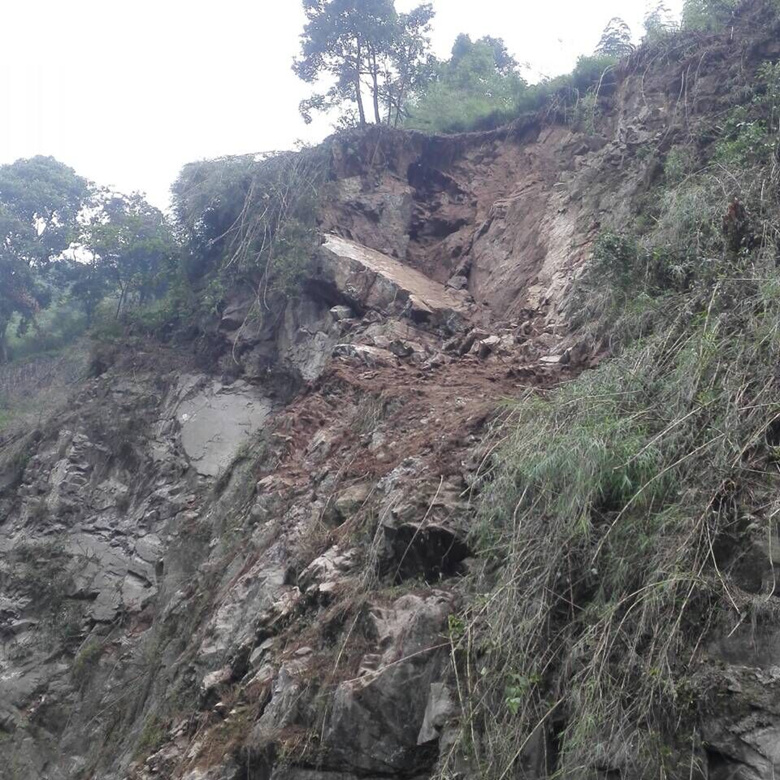 5月10日14點,國道318線天全縣境內(nèi)月亮灣大橋往二郎山方向約60m處公路內(nèi)側(cè)邊坡發(fā)生小規(guī)模崩塌,緊急搶修后交通恢復(fù),但坡體上部仍殘留下較多的崩塌物,有隨時下滑掩埋路面再次阻斷交通的可能,途經(jīng)車輛極其危險,安全隱患極大。