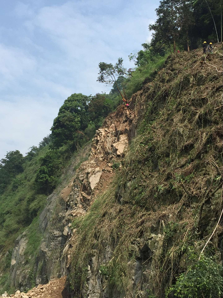 經(jīng)項目組清理路面跨塌土石方后,318國道已于19日晚恢復(fù)通車。目前,項目組正在清除坡體上殘留崩塌體、安裝主動防護(hù)網(wǎng)。