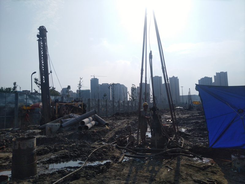 為確?!叭A府279 項目”巖土勘察的順利完成,及時向建設(shè)單位、設(shè)計單位、有關(guān)施工單位提供全面的、可靠的、科學的勘察成果,我院水文地質(zhì)工程公司先后選派五名高級工程師和其他現(xiàn)場管理、地質(zhì)技術(shù)人員組成項目組駐扎現(xiàn)場,克服工期緊、高溫暴雨以及鉆機荒等各種因素的影響,加班加點趕進度;院長安世澤、院黨委書記謝大軍以及水文地質(zhì)工程公司領(lǐng)導、技術(shù)顧問、生產(chǎn)管理部門人員等先后前往項目一線慰問作業(yè)人員并進行指導,全力協(xié)助項目部解決施工過程中遇到的具體問題。