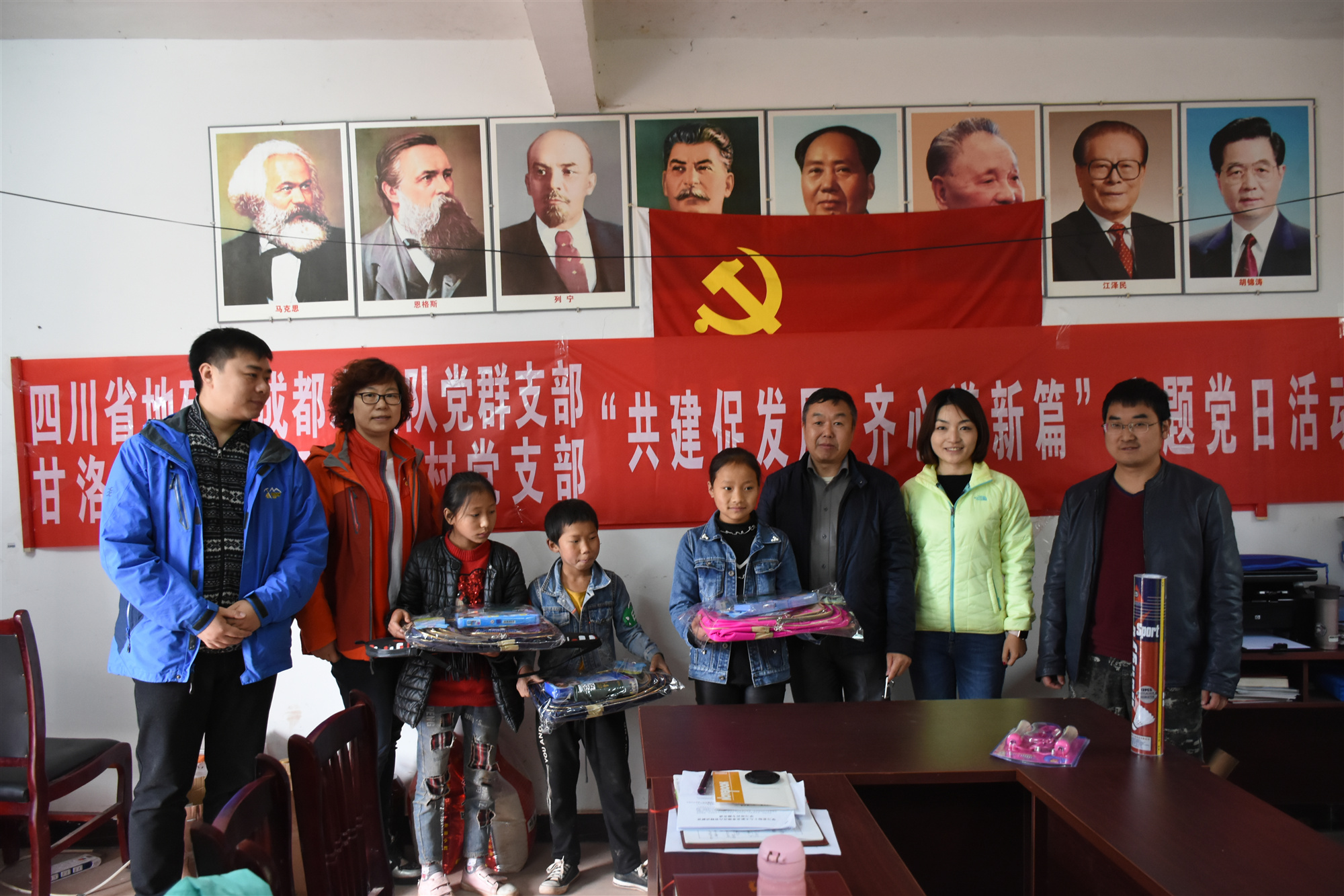 11月15日-16日,為切實(shí)加強(qiáng)基層黨組織建設(shè),助推幫扶地打好脫貧攻堅(jiān)戰(zhàn),成都水文隊(duì)黨委書記謝大軍一行到對口幫扶的甘洛縣田壩鎮(zhèn)玉門口村開展“四川省地礦局成都水文隊(duì)黨群支部與甘洛縣田壩鎮(zhèn)玉門口村黨支部 共建促發(fā)展 齊心譜新篇”主題黨日活動。政工部主任、隊(duì)黨群支部書記李彥婷,財(cái)務(wù)部主任朱敬萍,市場部主任黃磊參加活動。