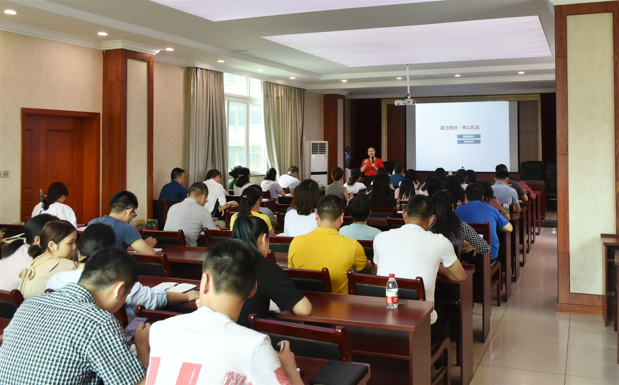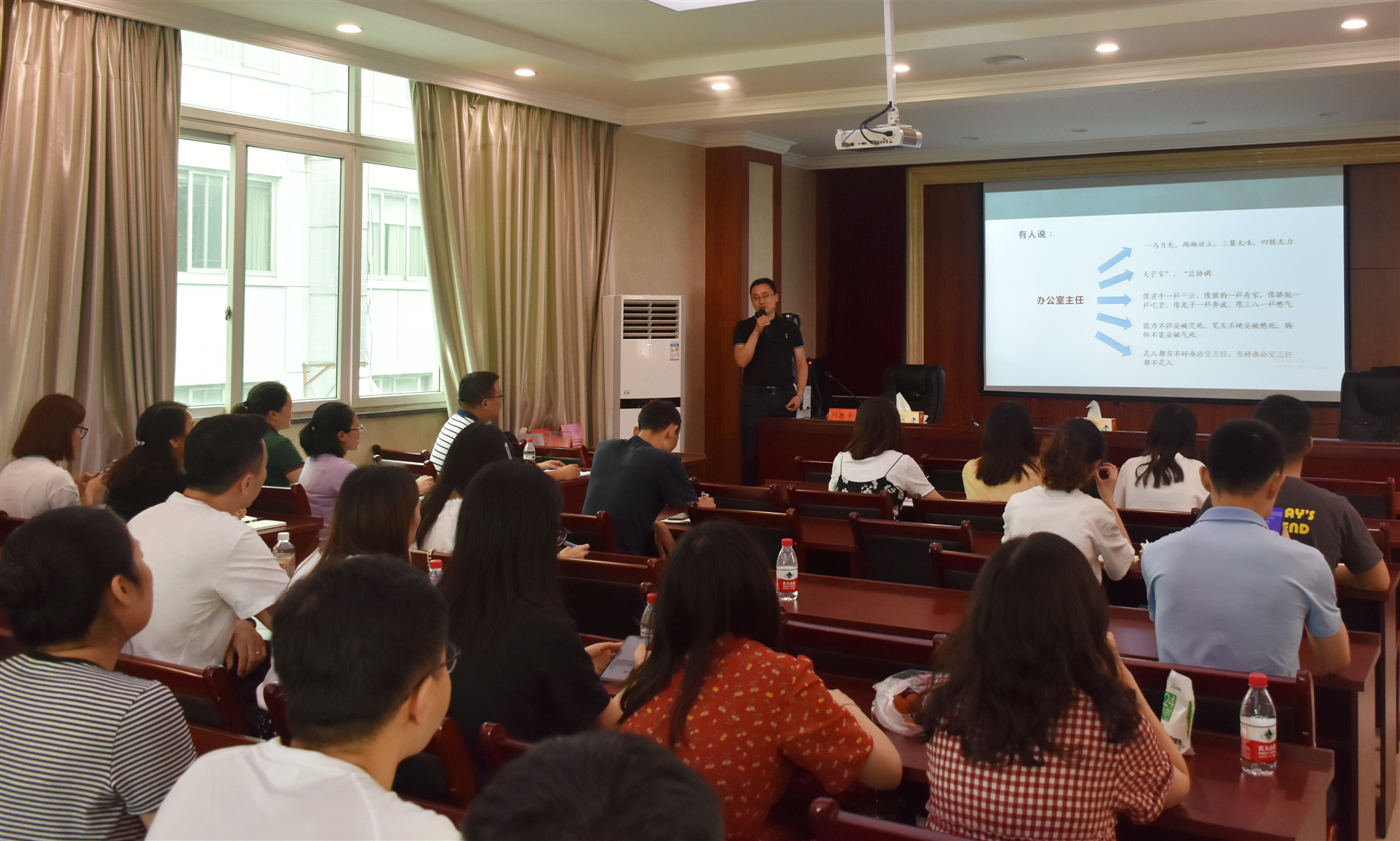 為全面提高院管理水平,切實(shí)提升職工業(yè)務(wù)素質(zhì)與綜合服務(wù)能力,6月20日,院綜合管理部組織開(kāi)展“2019年度實(shí)體辦公室工作人員、經(jīng)營(yíng)人員培訓(xùn)會(huì)”,特邀職業(yè)禮儀師張?zhí)鸷退拇ㄊ⊥艘圮娙耸聞?wù)廳辦公室主任彭思奇授課。黨委書記謝大軍親臨會(huì)場(chǎng),并作動(dòng)員講話,來(lái)自管理部門及二級(jí)實(shí)體的70余人參加了培訓(xùn)。